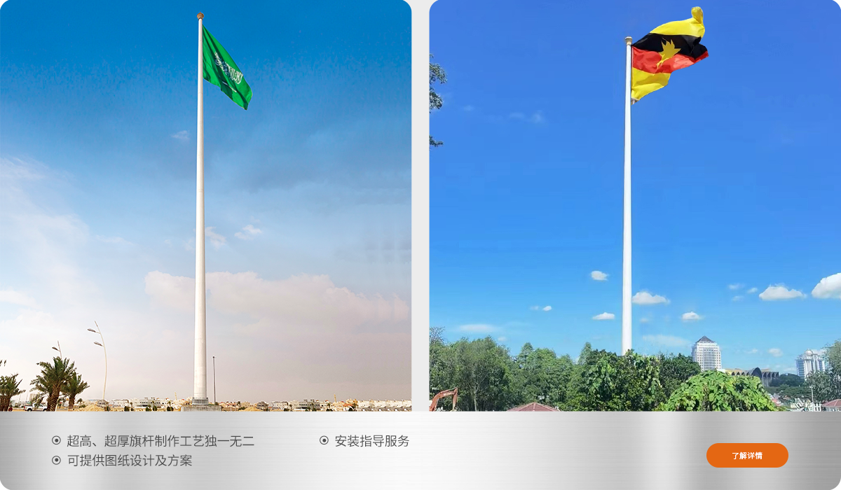專注生產(chǎn)20年旗桿,提供優(yōu)質(zhì)的高質(zhì)量產(chǎn)品、系統(tǒng)解決方案以及全方位的技術(shù)支持服務(wù)。