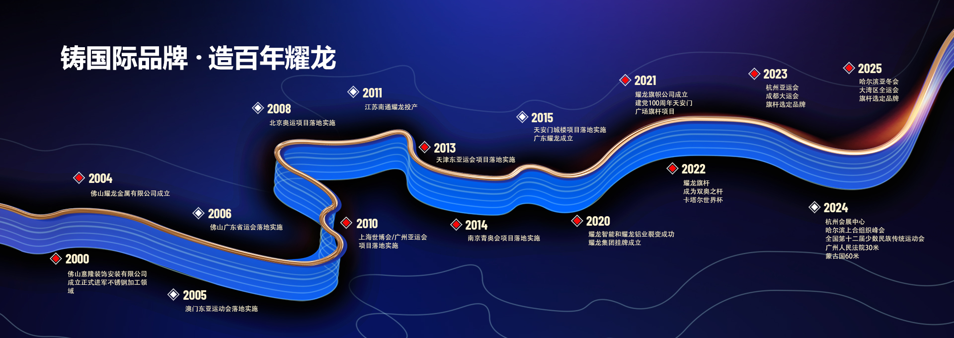 主營旗桿、不銹鋼旗桿、鋁合金旗桿、頒獎旗桿等旗桿廠家,公司所生產(chǎn)的旗桿產(chǎn)品已經(jīng)20年,形成良好的市場口碑。國家以及政府地區(qū)的大型項(xiàng)目形象工程均指定使用耀龍旗桿。已成功成為天安門城樓、北京奧運(yùn)會、北京冬奧會、國家博物館、福建海峽國際會展中心、上海世博會、亞洲運(yùn)動會、深圳大運(yùn)會、南京青奧會、廣州奧體中心、汕頭亞青會、廣州國際會展中心、卡塔爾世界杯廣場、福建廈門新會展中心的旗桿選定升旗品牌,為國家運(yùn)動賽事的順利開展作出了巨大貢獻(xiàn)。